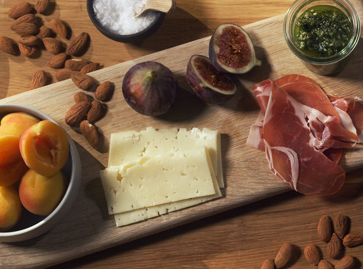 Naturally tasty Arla Havarti is the perfect starting point to a delicious cheese plate filled with fresh figs and sweet apricots, pesto, savory ham, caper berries and home baked bread. Perfect for sharing!