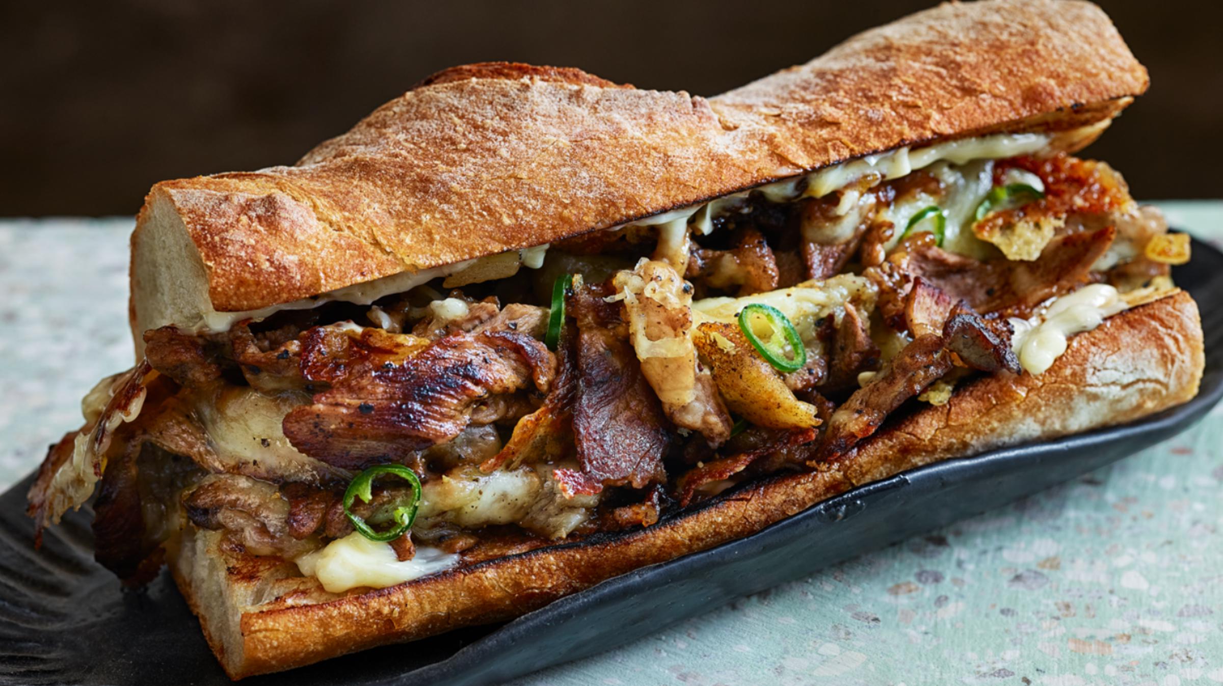 - Cut the bread in half lengthways. Spread the mayonnaise on top and fill with the meat.