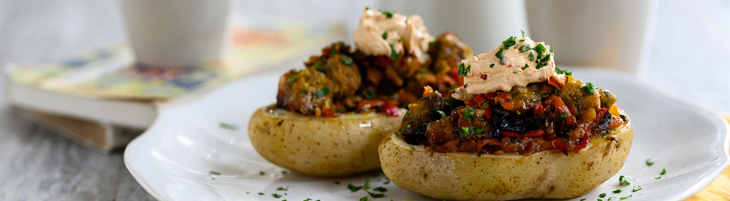 Wash the potatoes, cut in half lengthwise and using a spoon scoop out part of the flesh.