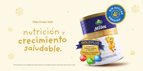 Milex Kinder Gold formulada para apoyar las necesidades de un niño en crecimiento.