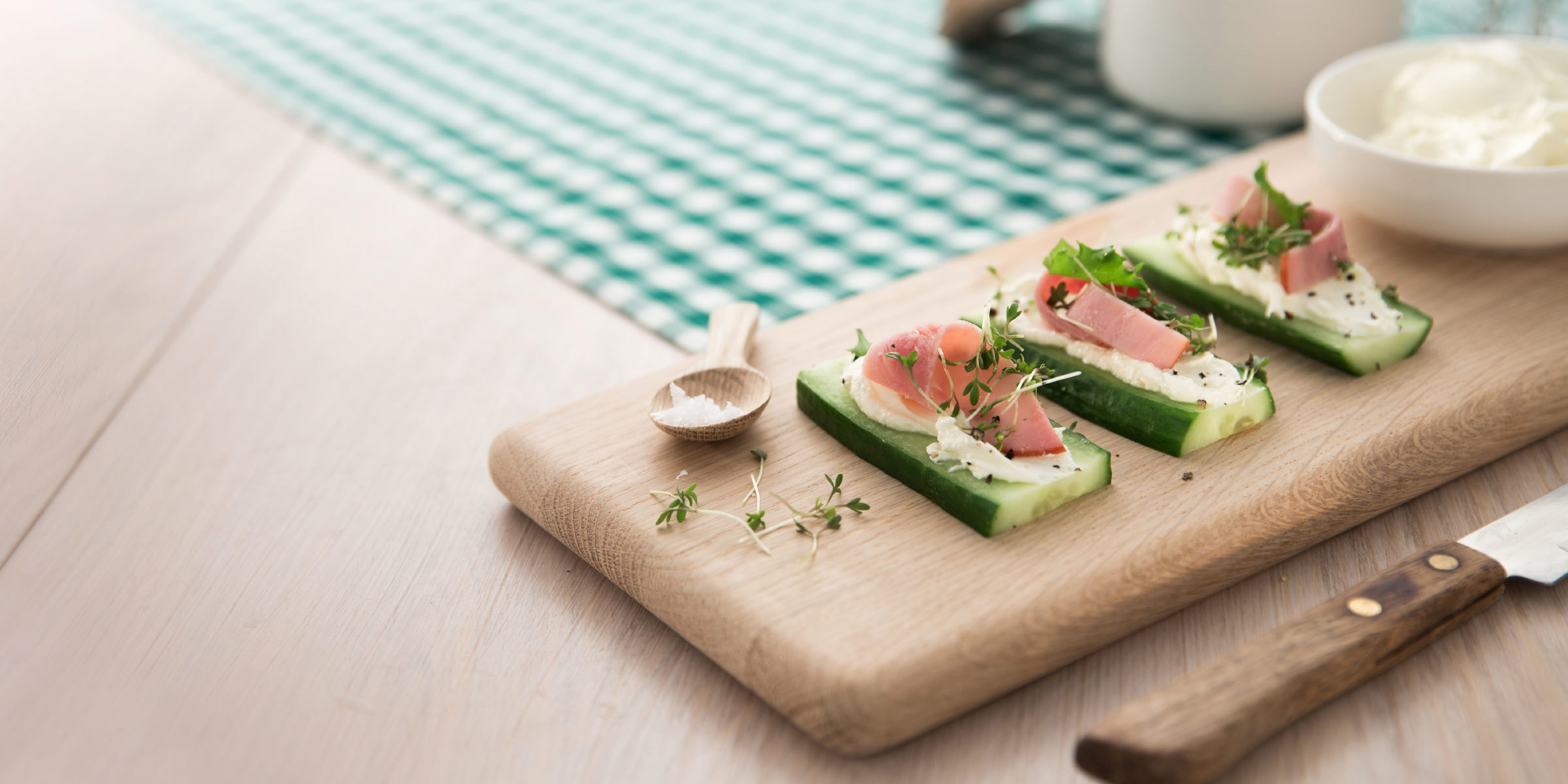 - Étendre le Fromage à la crème sur les tranches de concombre