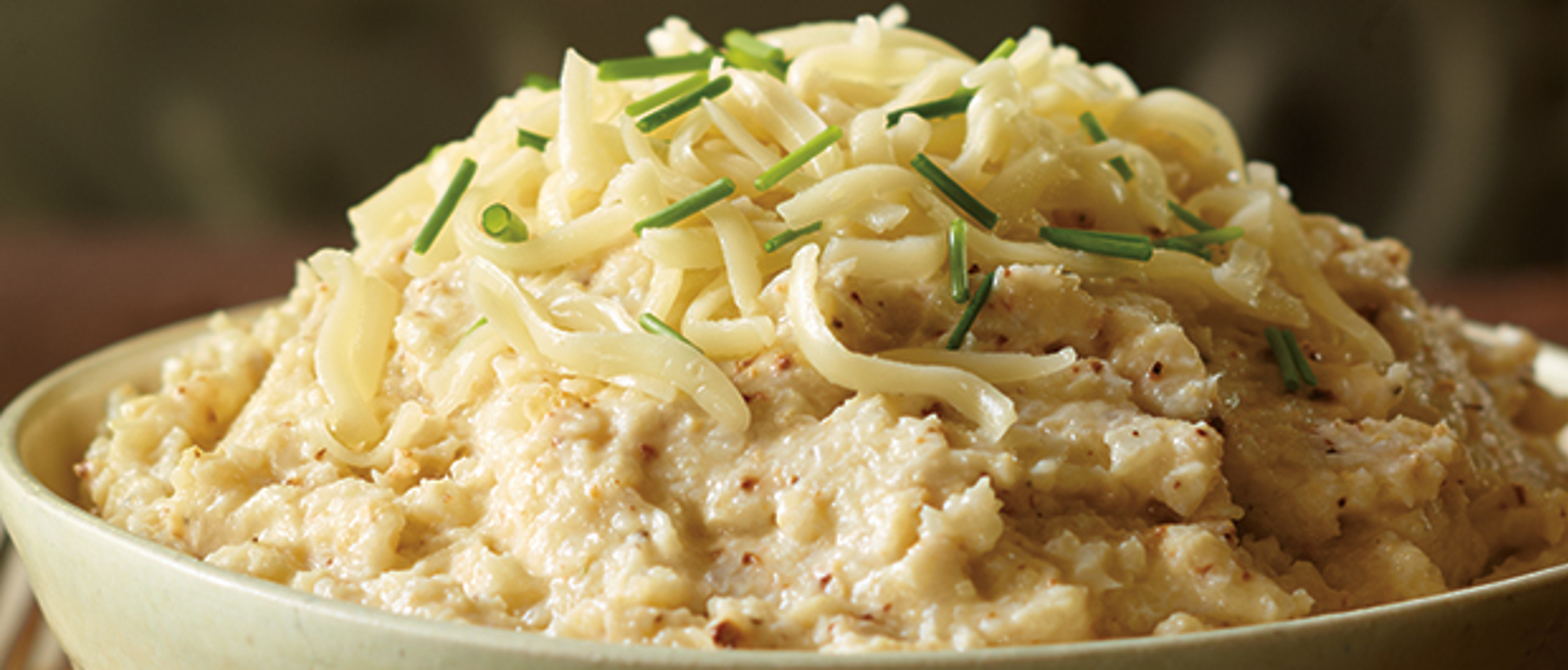 Retirer du four et mettre le mélange de chou-fleur et d’ail dans le bol d'un gros robot culinaire. Ajouter le Fromage Havarti (réserver 2 c. à soupe pour la garniture, si désiré), la crème et le beurre. Assaisonner au goût avec sel et poivre noir. Réduire jusqu'à une consistance lisse. Garnir de ciboulette et de Fromage Havarti additionnel si désiré et servir.