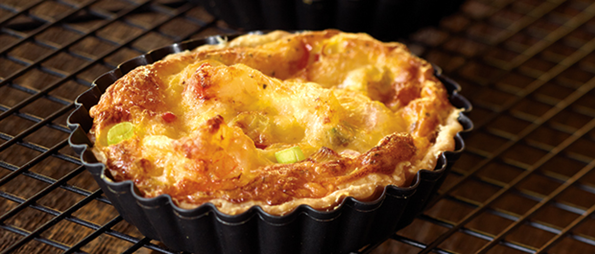 Battre les œufs, le sel, le poivre, la crème et la sauce à fruits de mer dans un bol moyen jusqu'à consistance lisse. Répartir uniformément l'oignon vert, les crevettes et le Fromage Havarti dans la croûte à tarte ou tartelettes. Verser lentement le mélange d'œuf sur les garnitures. Cuire 40 minutes ou jusqu'à ce que le dessus gonfle et soit doré. (Pour les mini croûtes à tartelettes, réduire le temps de cuisson de 10 minutes)