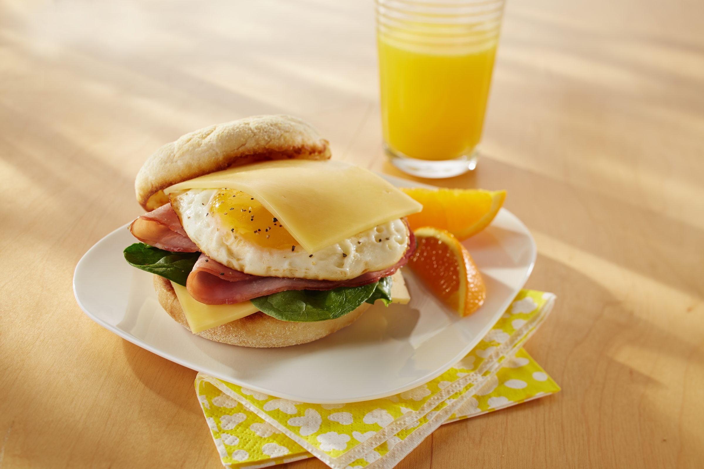 Déposer deux moitiés de muffin anglais grillées sur une assiette. Mettre l'œuf, une poignée d'épinards et deux tranches de fromage Havarti crémeux Arla® tranché. S'assurer de mettre le Havarti contre la moitié chaude pour un sandwich déjeuner crémeux et fondant.