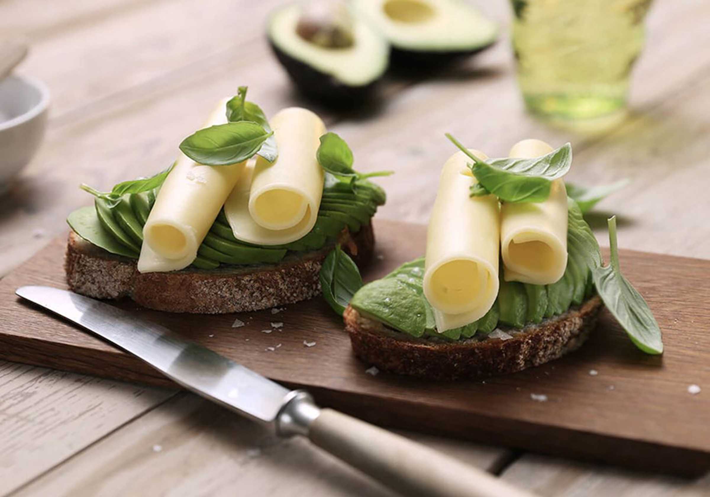 Un déjeuner vert? Oui, et pourquoi pas! De délicieuses tranches d'avocat, à haute teneur en vitamine K sur du pain de grains entiers grillés et une tranche d'Havarti Crémeux Arla, ou de tout fromage Havarti Arla de votre choix - une source naturelle de protéines et de calcium.