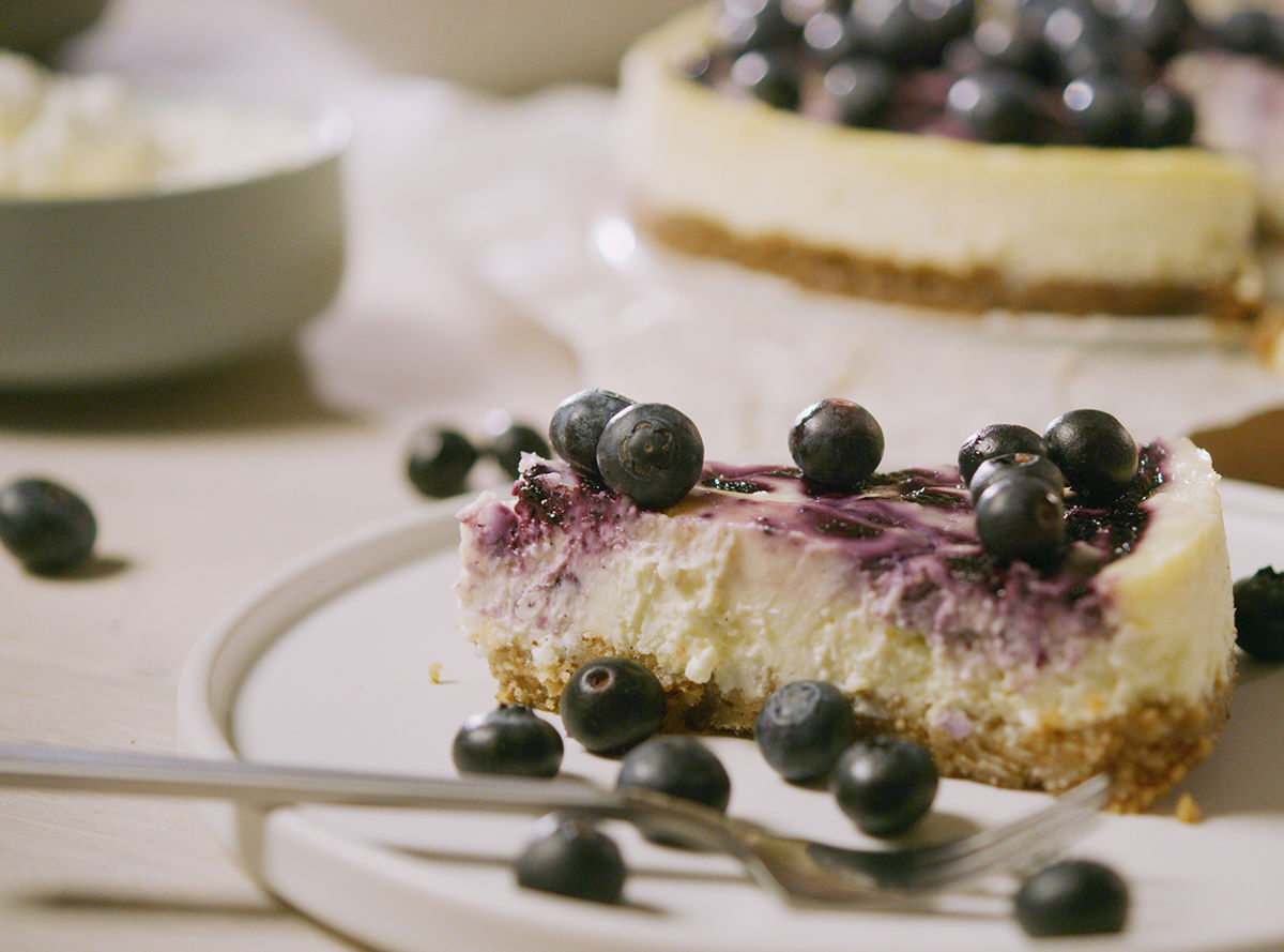 BLUEBERRY AND WHITE CHOCOLATE CHEESECAKE WITH ARLA NATURAL CREAM CHEESE